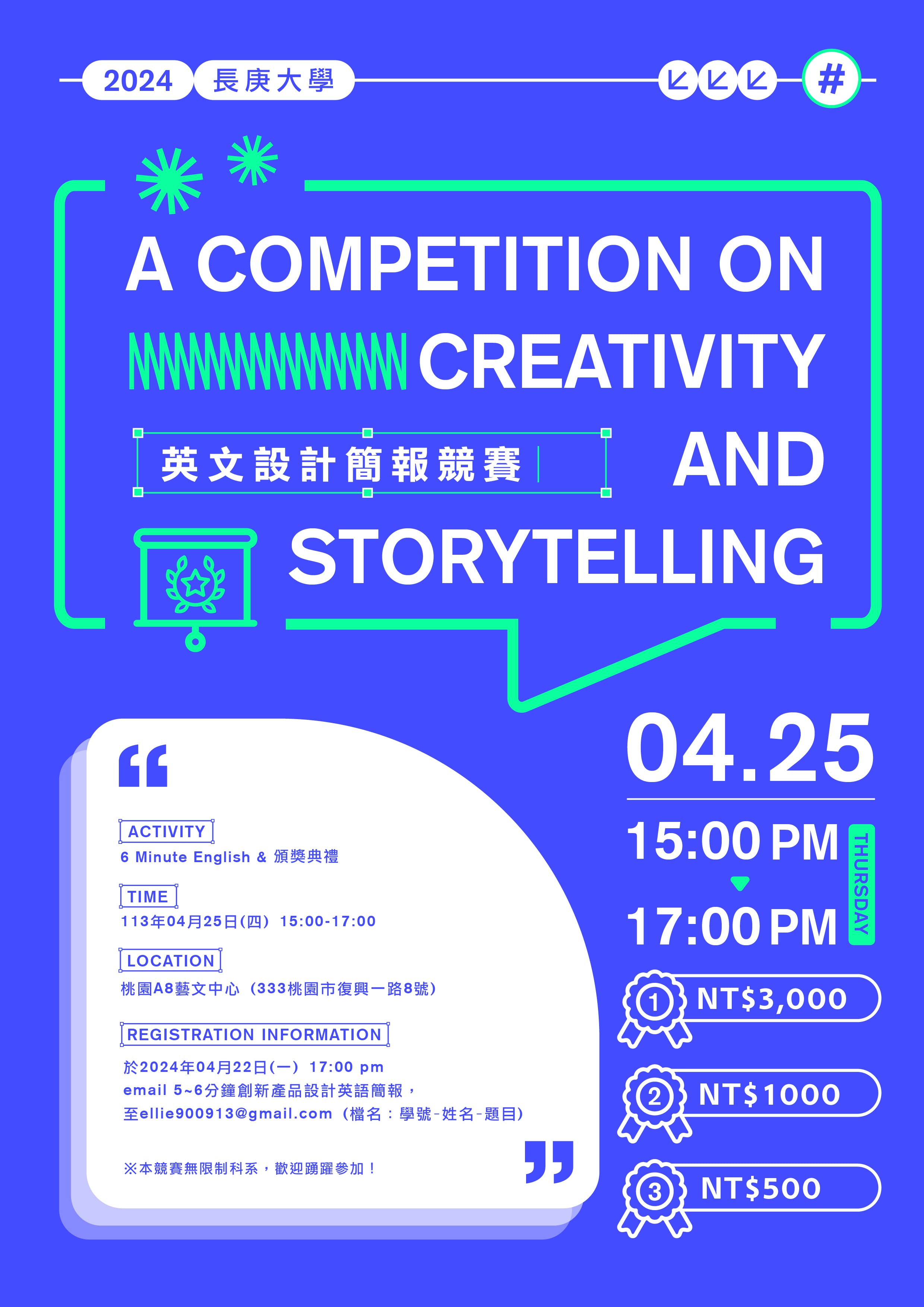 比賽時間:2024年04月25日(四) 15:00-17:00